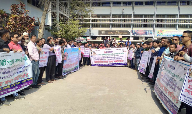 চাকরি স্থায়ীকরণের দাবিতে নেসকো কর্মচারীদের বিক্ষোভ