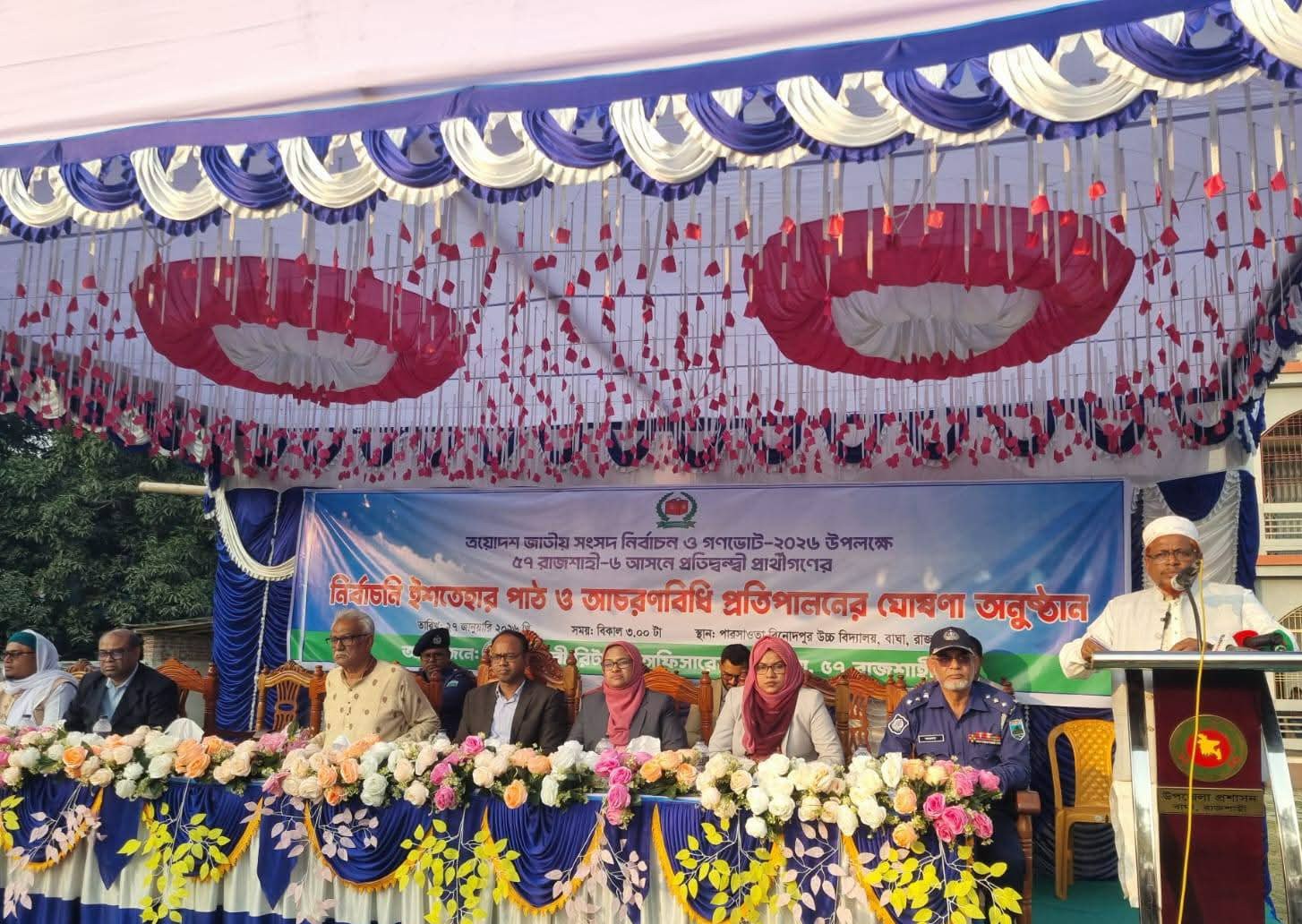 চারঘাট-বাঘা আসনে এক মঞ্চে ৪ প্রার্থীর ইশতেহার পাঠ