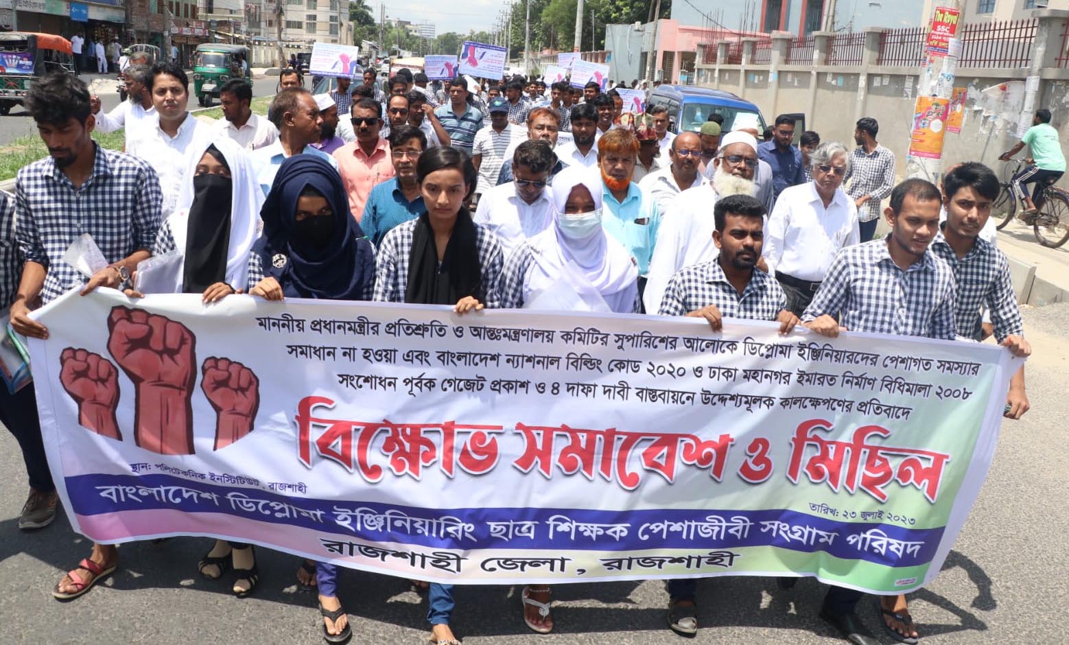 স্টাফ রিপোর্টার: চারদফা দাবি বাস্তবায়নের দাবিতে রাজশাহীতে বিক্ষোভ মিছিল করেছে ইনস্টিটিউশন অব ডিপ্লোমা ইঞ্জিনিয়ার্স, বাংলাদেশের (আইডিইবি) রাজশাহী জেলা শাখা। রোববার দুপুরে রাজশাহী পলিটেকনিক ইনস্টিটিউটের সামনে থেকে বিক্ষোভ মিছিলটি বের করা হয়।