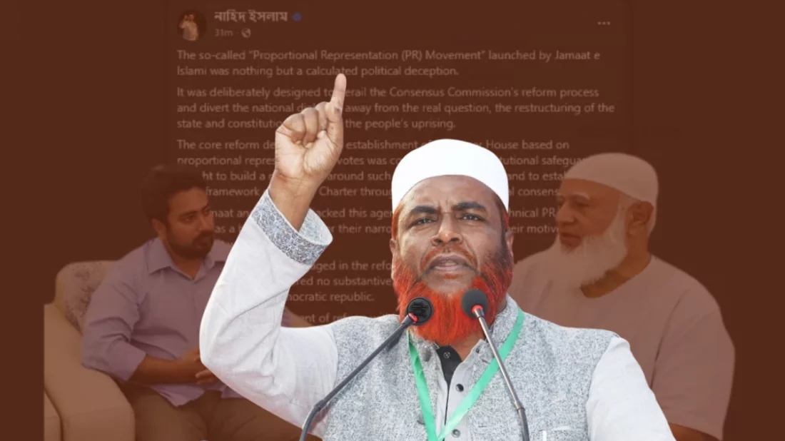 অনলাইন ডেস্ক : জাতীয় নাগরিক পার্টির (এনসিপি) আহ্বায়ক নাহিদ ইসলামের ফেসবুক পোস্ট ইস্যূতে বাংলাদেশ জামায়াতে ইসলামীর সেক্রেটারি জেনারেল অধ্যাপক মিয়া গোলাম পরওয়ার বলেছেন, একটা দল ফেসবুকে স্ট্যাটাস দিয়ে বলেছে- জামায়াত সংস্কার, অংশীদারিত্বের রাজনীতি, দেশ গঠন ও অভ্যুত্থানে কোনো ভূমিকা রাখেনি। তোমরা নতুন দল, রাজনীতিতে জামায়াতের সঙ্গে পাল্লা দিতে গেলে বহু দূর যেতে হবে। জন্ম নিয়েই বাপের সঙ্গে পাল্লা দিও না।