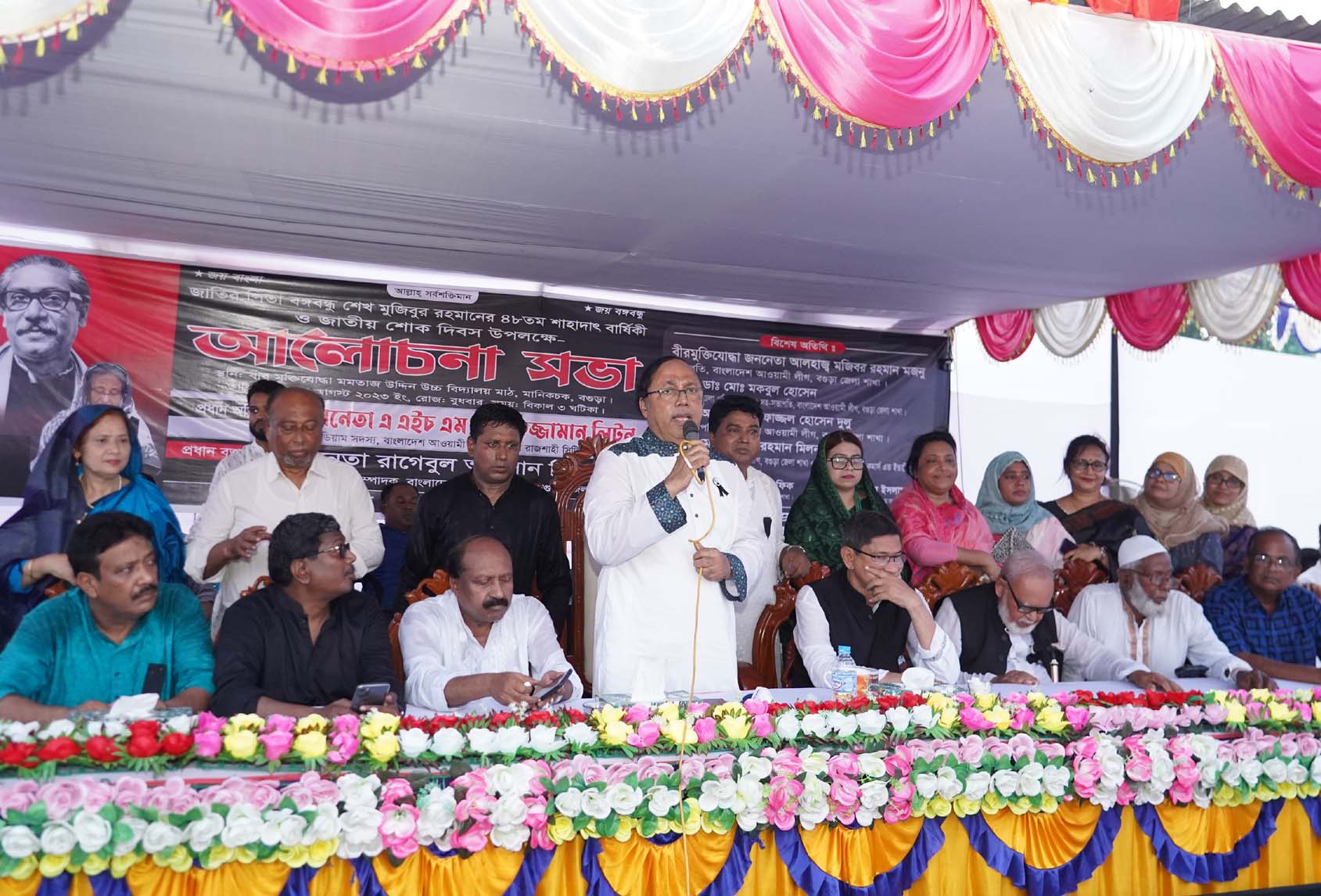 ১৫ আগস্ট জাতির পিতা বঙ্গবন্ধু শেখ মুজিবুর রহমানের ৪৮তম শাহাদাৎ বার্ষিকী ও জাতীয় শোক দিবস উপলক্ষে বুধবার (৩০ আগস্ট) বিকেলে বগুড়া সদর উপজেলা আওয়ামী লীগের উদ্যোগে মানিকচকে বীর মুক্তিযোদ্ধা মমতাজ উদ্দিন বিদ্যালয় মাঠে আয়োজিত আলোচনা সভায় প্রধান অতিথির বক্তব্যে তিনি এসব কথা বলেন।
