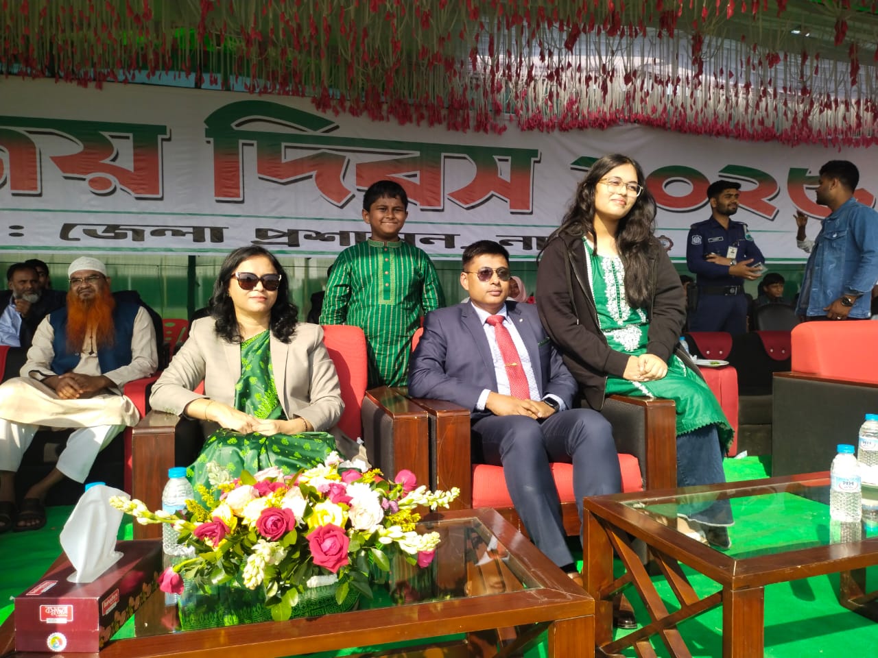 সকাল সাড়ে ৮টায় জেলা স্টেডিয়ামে জাতীয় পতাকা উত্তোলন, জাতীয় সংগীত পরিবেশন, ও মার্চ পাস্টে সালাম গ্রহণ করেন জেলা প্রশাসক আসমা শাহীন ও পুলিশ সুপার আব্দুল ওয়াহাব।