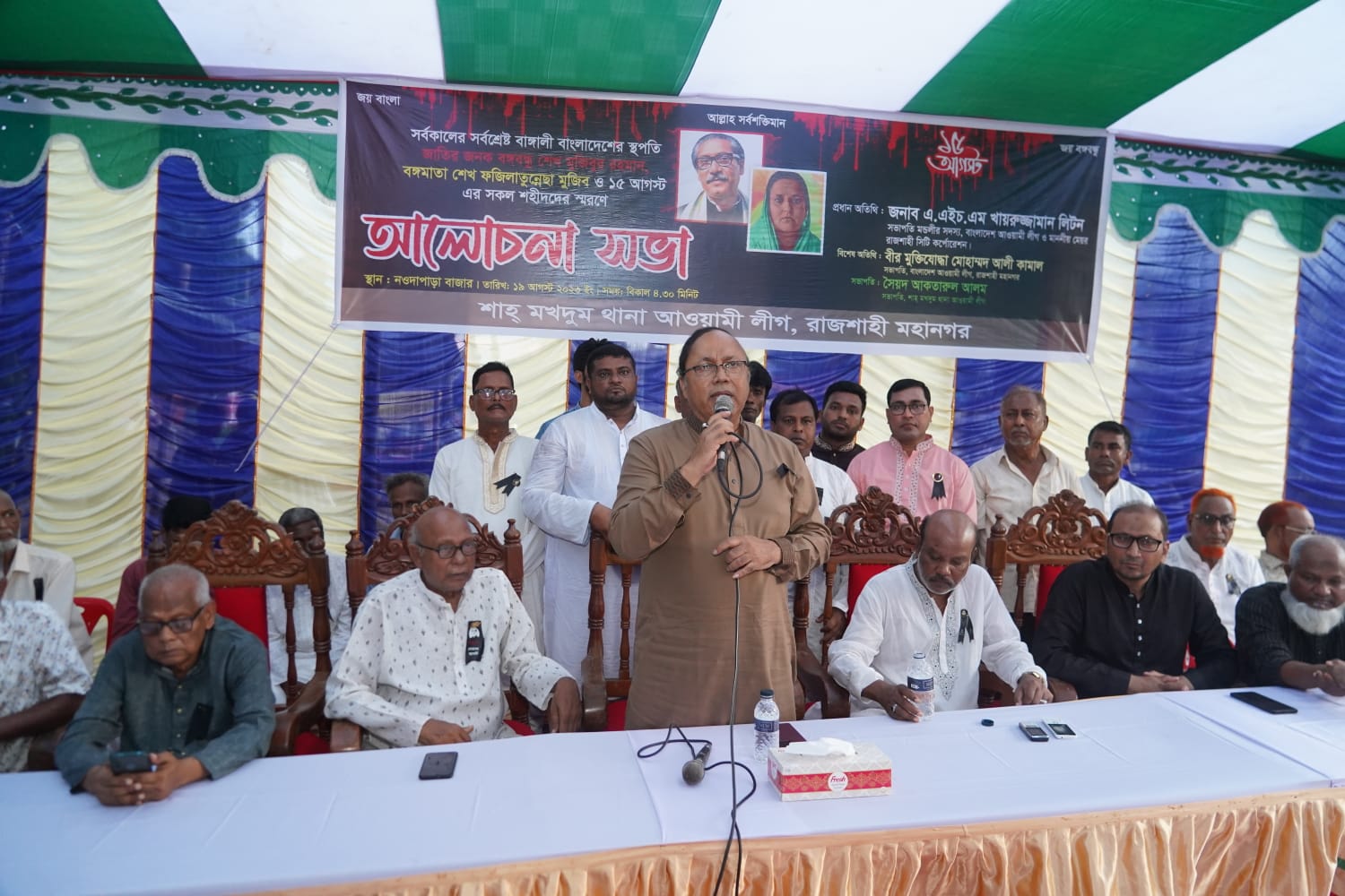 ১৫ আগস্ট জাতীয় শোক দিবস ও জাতির পিতা বঙ্গবন্ধু শেখ মুজিবুর রহমানের ৪৮তম শাহাদাৎ বার্ষিকী উপলক্ষে শনিবার (১৯ আগস্ট) বিকেলে নগরীর নওদাপাড়া বাজারে শাহ মখদুম থানা আওয়ামী লীগ আয়োজিত আলোচনা সভায় প্রধান অতিথির বক্তব্যে এসব কথা বলেন তিনি।