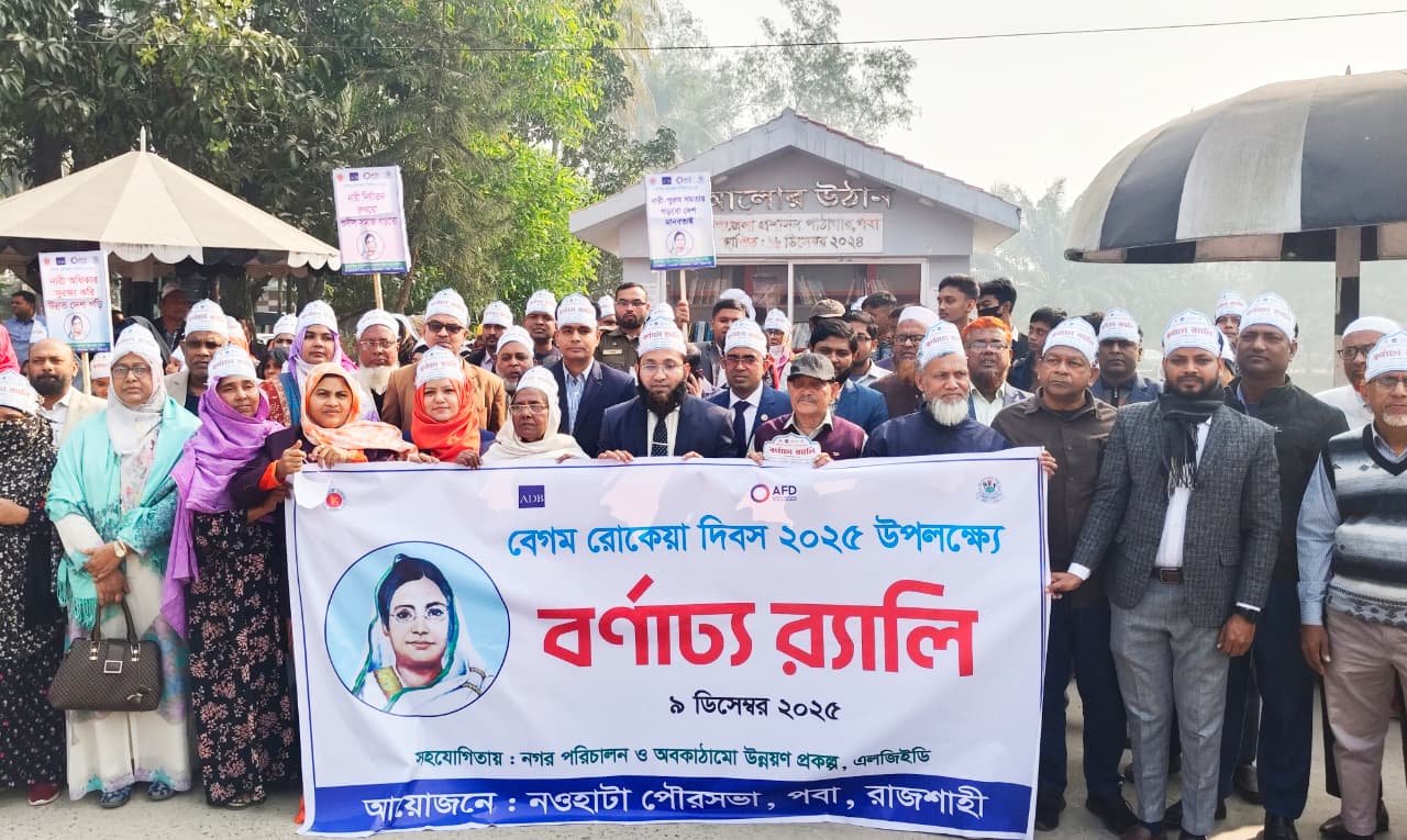 স্টাফ রিপোর্টার : পবা উপজেলায় ব্যাপক উৎসাহ-উদ্দীপনার মধ্যদিয়ে বেগম রোকেয়া দিবস পালিত হয়েছে। দিবসটি উপলক্ষে মঙ্গলবার (৯ ডিসেম্বর) সকালে উপজেলা পরিষদ চত্বরে নওহাটা পৌরসভা ও মহিলা বিষয়ক অধিদপ্তরের উদ্যোগে একটি বর্ণাঢ্য র্যালি বের করা হয়।