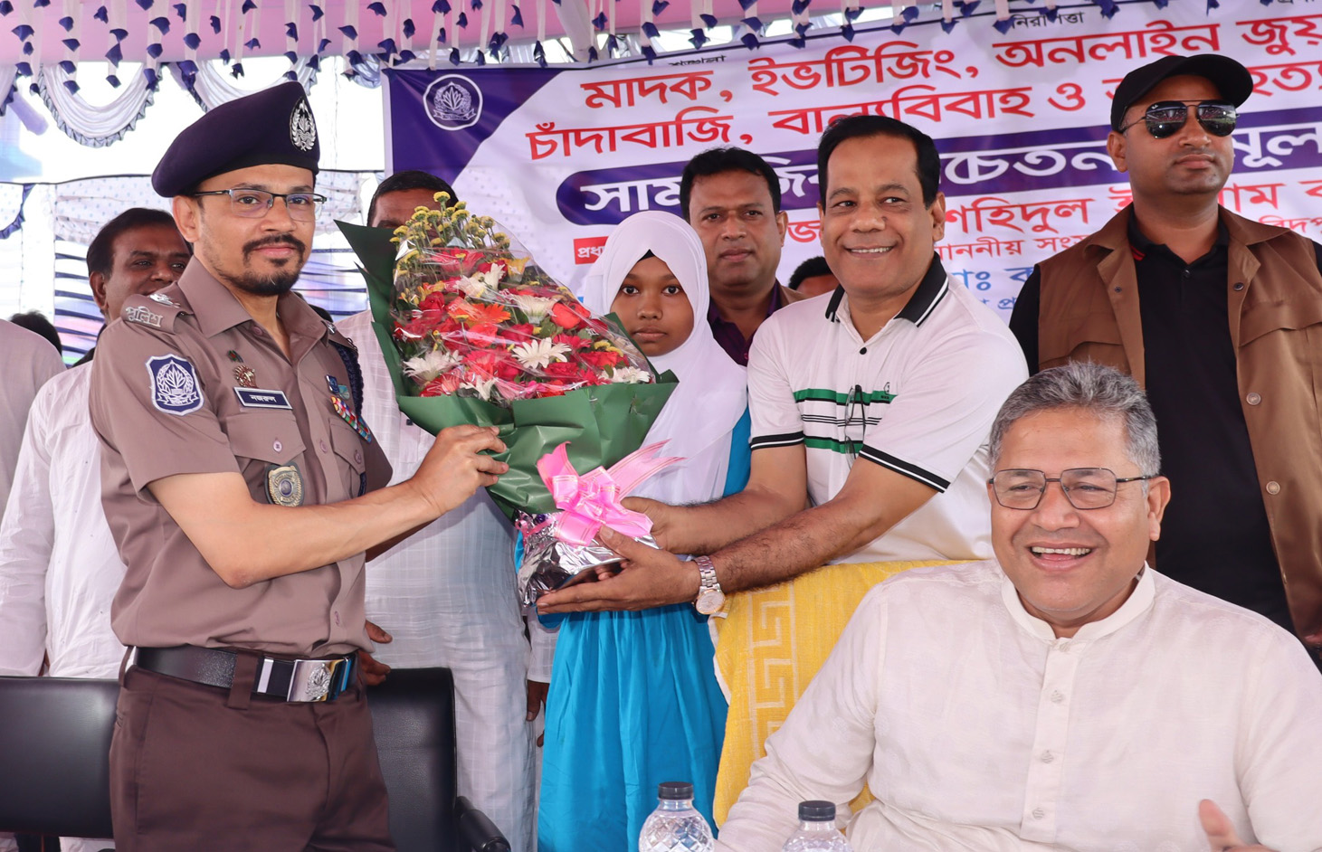 নারীদের নিরাপত্তা বিঘ্নিতকারী ইভটিজিং এবং সাধারণ মানুষের জানমালের ওপর আঘাত হানা চাঁদাবাজিকে আমরা কঠোর হস্তে দমন করব। পাশাপাশি, একটি মেয়ের উজ্জ্বল ভবিষ্যৎ নিশ্চিত করতে বাল্যবিবাহ বন্ধে আমাদের অনড় থাকতে হবে এবং যেকোনো মানসিক সংকটে আত্মহত্যার পথ না বেছে নিয়ে জীবনকে ভালোবাসতে শিখতে হবে। মনে রাখবেন, অপরাধী যেই হোক তার কোনো ছাড় নেই; আপনারা নির্ভয়ে তথ্য দিয়ে পুলিশকে সহায়তা করুন, আমরা একটি সুস্থ ও অপরাধমুক্ত সমাজ উপহার দিতে প্রতিশ্রুতিবদ্ধ।”