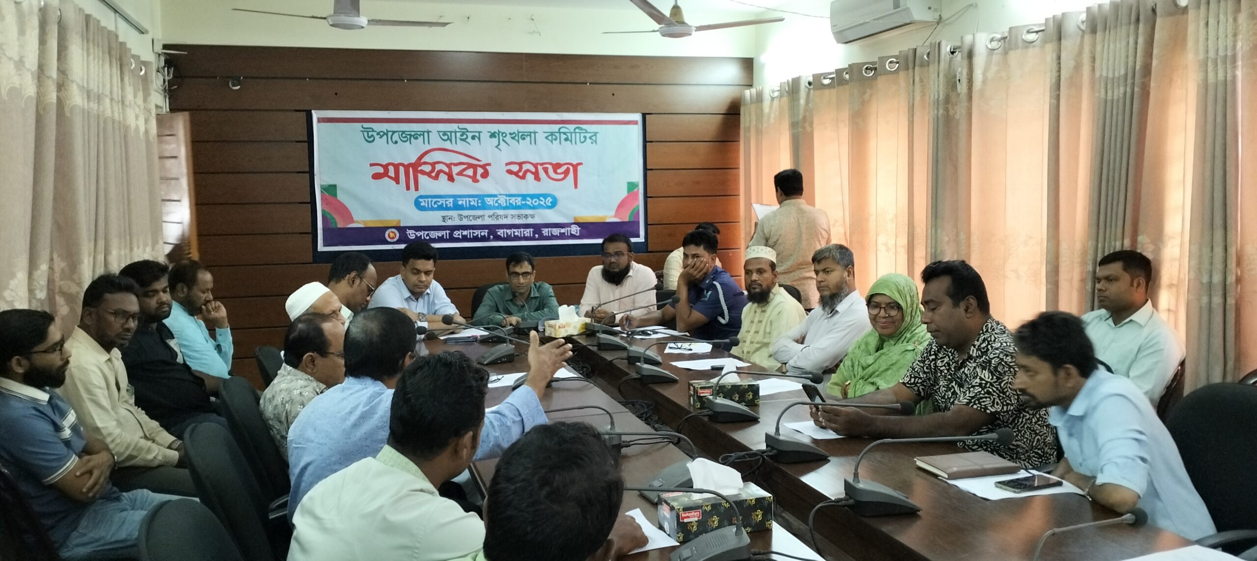 হেলাল উদ্দীন, বাগমারা : রাজশাহীর বাগমারা উপজেলা আইন-শৃংখলা কমিটির মাসিক সভা বৃহস্পতিবার (৩০ অক্টোবর ) বেলা সাড়ে ১১টায় উপজেলা পরিষদ সভা কক্ষে অনুষ্ঠিত হয়।