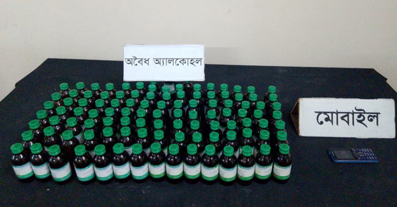 অভিযানের সময় তার সঙ্গে থাকা বাজারের ব্যাগ তল্লাশি করে ১১৬ বোতল (১১.৬ লিটার) অবৈধ অ্যালকোহল ও একটি মোবাইল ফোন উদ্ধার করা হয়।