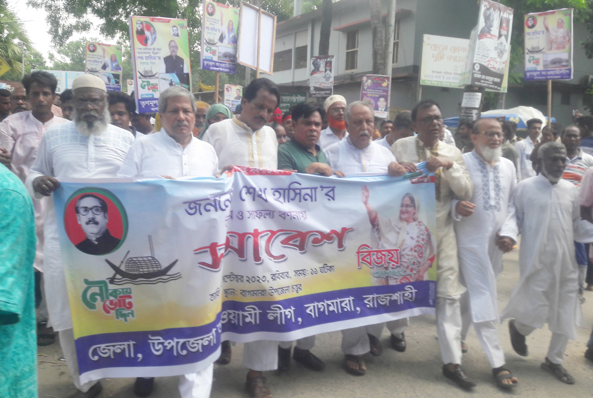 হেলাল উদ্দীন, বাগমারা : সরকারের নানামূখী উন্নয়ন ও সাফল্য তুলে ধরে রাজশাহীর বাগমারায় তৃনমূল আওয়ামীলীগের উদ্যোগে রোববার (১০ সেপ্টেম্বর) বেলা এগারোটার দিকে গনমিছিল ও সমাবেশ অনুষ্ঠিত হয়েছে। এ উপলক্ষে ১৬টি ইউনিয়ন ও দুই পৌরসভা এলাকা হতে আলাদা আলাদা মিছিল নিয়ে উপজেলা পরিষদ চত্বর, ডাক বাংলো, শহীদ মিনার চত্বরে কয়েক হাজার নেতাকর্মী জড়ো হয়। সেখান থেকে একটি গন মিছিল উপজেলা সদর ভবানীগঞ্জ বাজারের প্রধান প্রধান রাস্তা প্রদক্ষিন শেষে উপজেলা চত্বরে এক সমাবেশে মিলিত হয়।