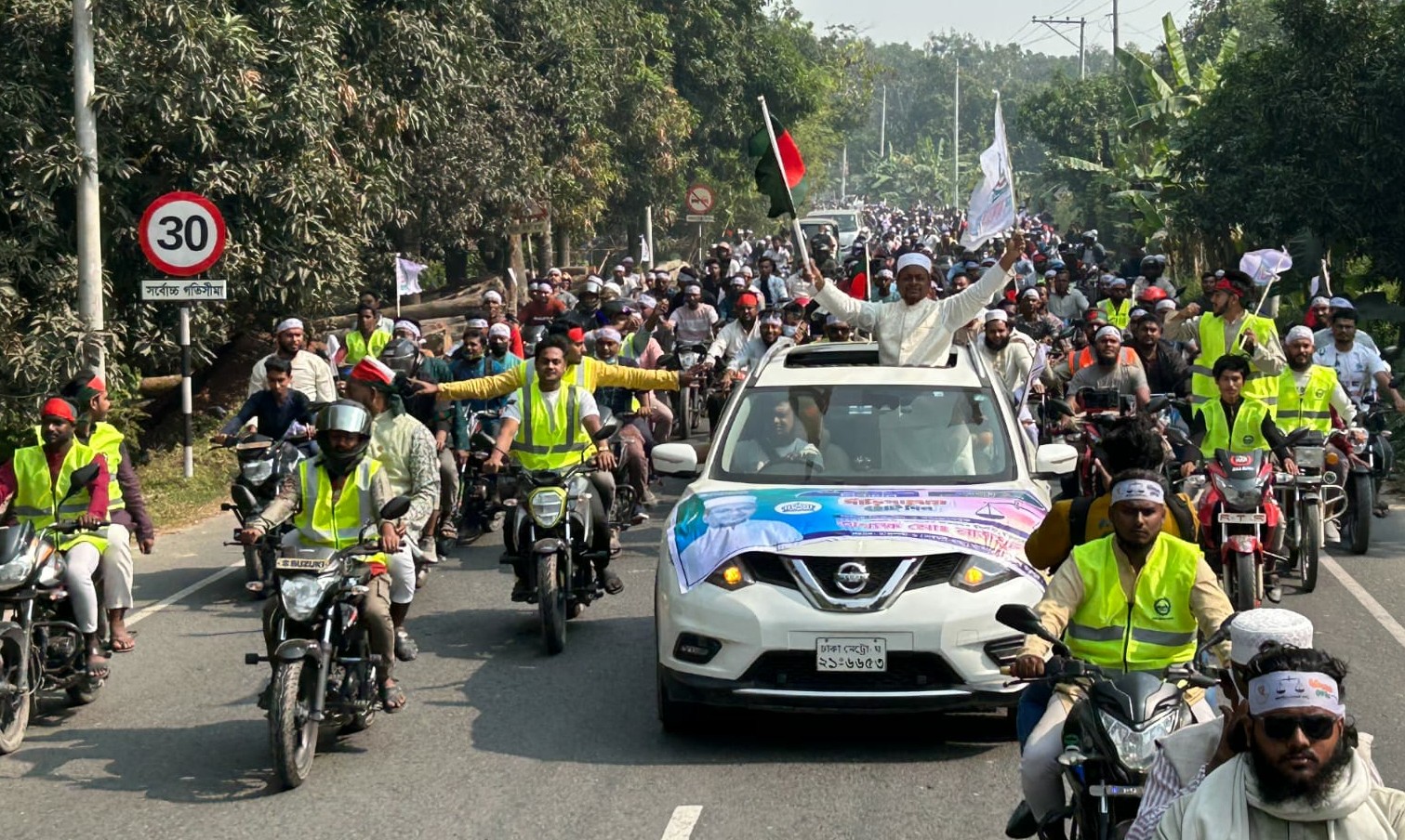 বাঘা-চারঘাটে জামায়াতের এমপি প্রার্থী অধ্যক্ষ নাজমুল হকের বিশাল শোডাউন