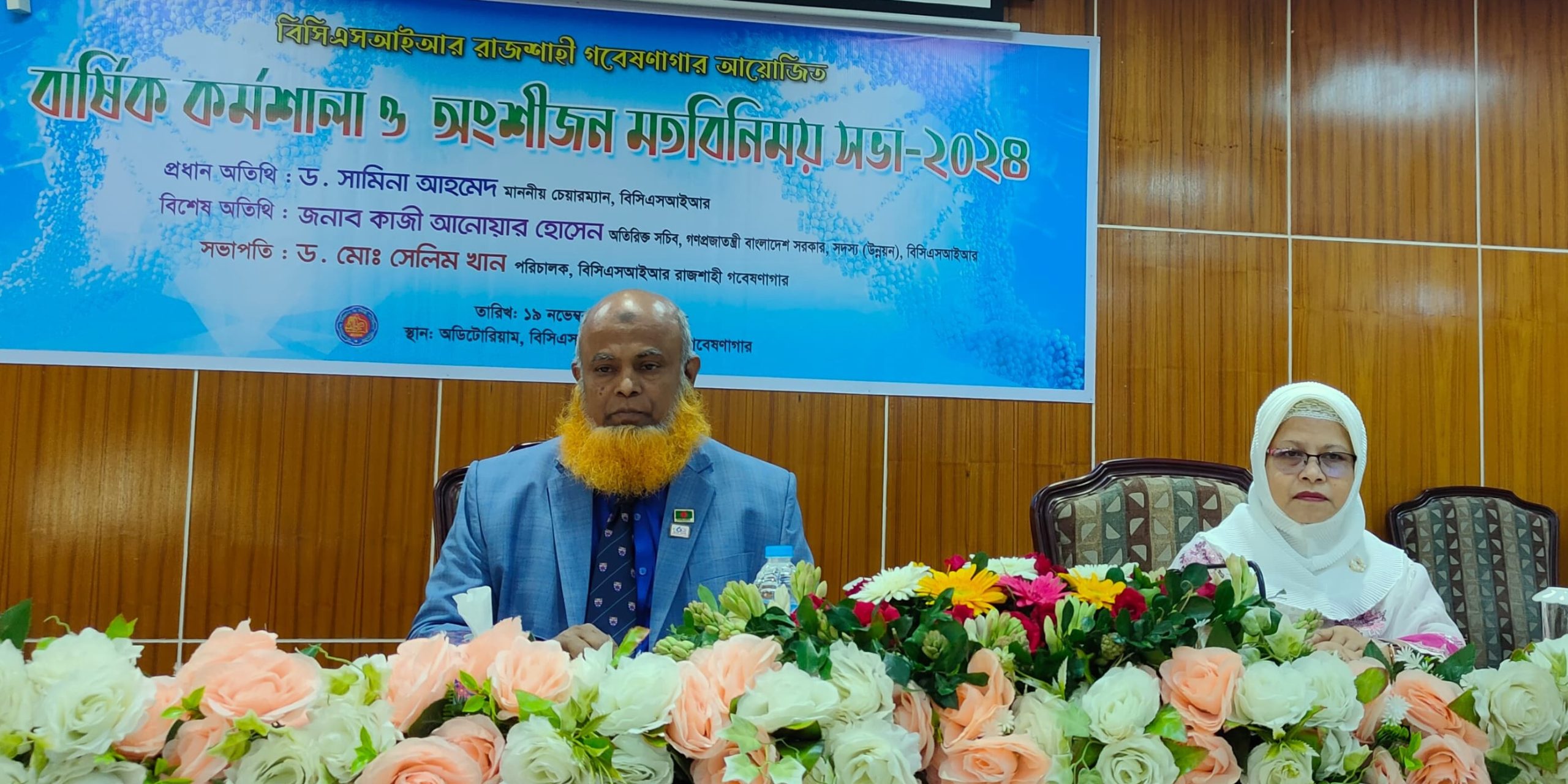 আরিফুল ইসলাম, রাজশাহী: আজ ১৯ নভেম্বর মঙ্গলবার সকাল ১০টায় বাংলাদেশ বিজ্ঞান ও শিল্প পরিষদ (বিসিএসআইআর) রাজশাহী গবেষণাগারে “বার্ষিক কর্মশালা ও অংশীজন মিতবিনিময় সভা-২০২৪” আয়োজন করা হয়। উক্ত অনুষ্ঠানে প্রধান অতিথির আসন অলংকৃত করেন বিসিএসআইআর-এর চেয়ারম্যান ড. সামিনা আহমেদ। তিনি তাঁর বক্তব্যে বিসিএসআইআর-এর সাথে অংশীজনদের সম্পর্ক উন্নয়নে এই ধরনের অনুষ্ঠানের গুরুত্ব তুলে ধরেন। পাশাপাশি তিনি শিল্প প্রতিষ্ঠানসমূহকে দেশিয় প্রযুক্তিতে বিনিয়োগ বৃদ্ধি করার প্রতি আহ্বান জানান। দর্শকশ্রোতা হিসাবে উপস্থিত ছিলেন বিভিন্ন শিল্প প্রতিষ্ঠানের কর্তাব্যক্তিগণ, শিল্পোদ্যেক্তাগণ এবং সাংবাদিকবৃন্দ। সভায় স্বাগত বক্তব্য প্রদান করেন অত্র প্রতিষ্ঠানের প্রধান বৈজ্ঞানিক কর্মকর্তা ড. মো: আহসান হাবীব। তিনি তাঁর বক্তব্যে সংক্ষেপে বিসিএসআইআর-এর বিগত সময়ের অর্জনসমূহ আলোকপাত করেন। এছাড়াও আন্তর্জাতিকমানের গবেষনাগার, দক্ষ জনবল বিশেষভাবে প্রযুক্তি উদ্ভাবন ও হস্তান্তরের দিকে বিসিএসআইআর-এর কাজ করার বিষয়টির গুরুত্ব আরোপ করেন।