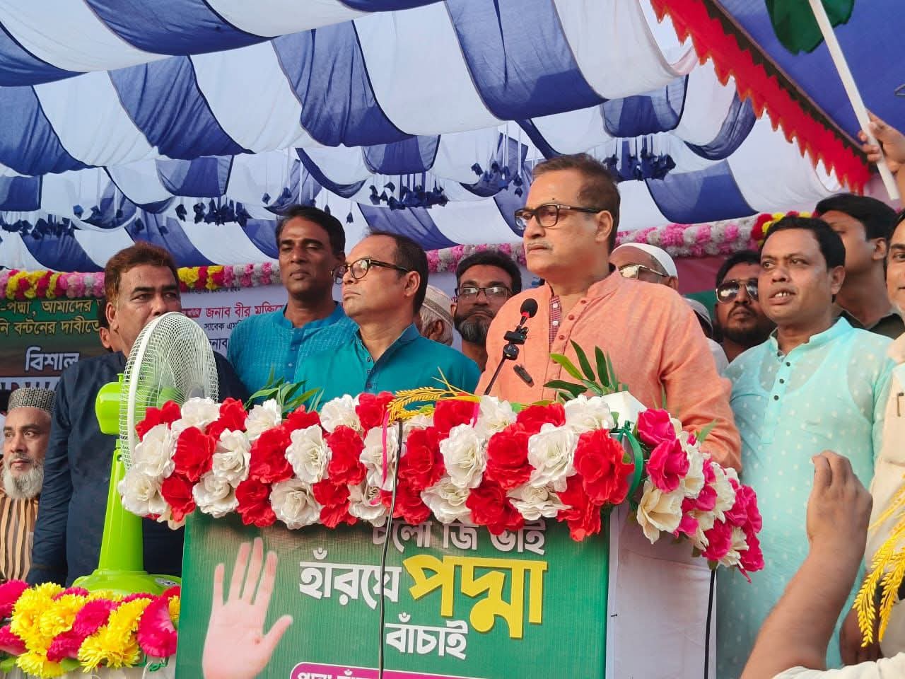 প্রধান বক্তা হারুনুর রশিদ বলেছেন, পদ্মা বাঁচাও আন্দোলনে জাতীয় পর্যায়ে জনমত গড়ে তোলার লক্ষে এই সমাবেশের আয়োজন। বাংলাদেশের অন্যতম সমস্যা ফারাক্কা ব্যারেজ। পদ্মার উজানে ফারাক্কায় বাঁধ তৈরি করে গঙ্গার পানি একতরফা প্রত্যাহারের ফলে পানি সংকট তৈরি হয়েছে। ভারতের সঙ্গে পানিবন্টন চুক্তি থাকলেও আশানুরূপ ফল পাইনি। বিএনপি ফারাক্কা ব্যারেজ নির্মাণের উদ্যোগ নিয়েছিল কিন্তু বাস্তবায়ন করতে পারেনি। পরে ১০ হাজার কোটি টাকা ব্যয়ে পদ্মা ব্যারেজ নির্মাণের উদ্যোগ নিয়েছিলেন তৎকালীন প্রধানমন্ত্রী বেগম খালেদা জিয়া। সেটি একনেকে পাশ হয়েছিল কিন্তু ভারতের দালাল শেখ হাসিনা ক্ষমতায় আসার পর সেই প্রকল্প আর আলোর মুখ দেখেনি। ভারত বাংলাদেশের শত্রুদের আশ্রয় দিয়েছে, তারা আমাদের পানিতে মারছে, সীমান্তে মারছে, বাণিজ্যে মারছে। এসব দাবি আদায়ে আমরা একটি বড় আকারে জনমত গঠন করতে চাই।