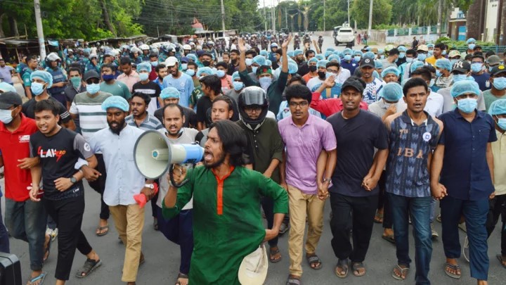 পদার্থবিজ্ঞান বিভাগের অধ্যাপক ড. সালেহ হাসান নকীব, এই মুহূর্তে আমরা রক্তের উপর দাড়িয়ে আছি। ঠান্ডা মাথায় মানুষকে হত্যা করা হয়েছে এবং রাষ্ট্র জুড়ে যে অরাজকতা তৈরি করা হয়েছে তা শুধু যে আমাদের ব্যথিত করেছে তা নয়। আমরা বিক্ষুব্ধ।