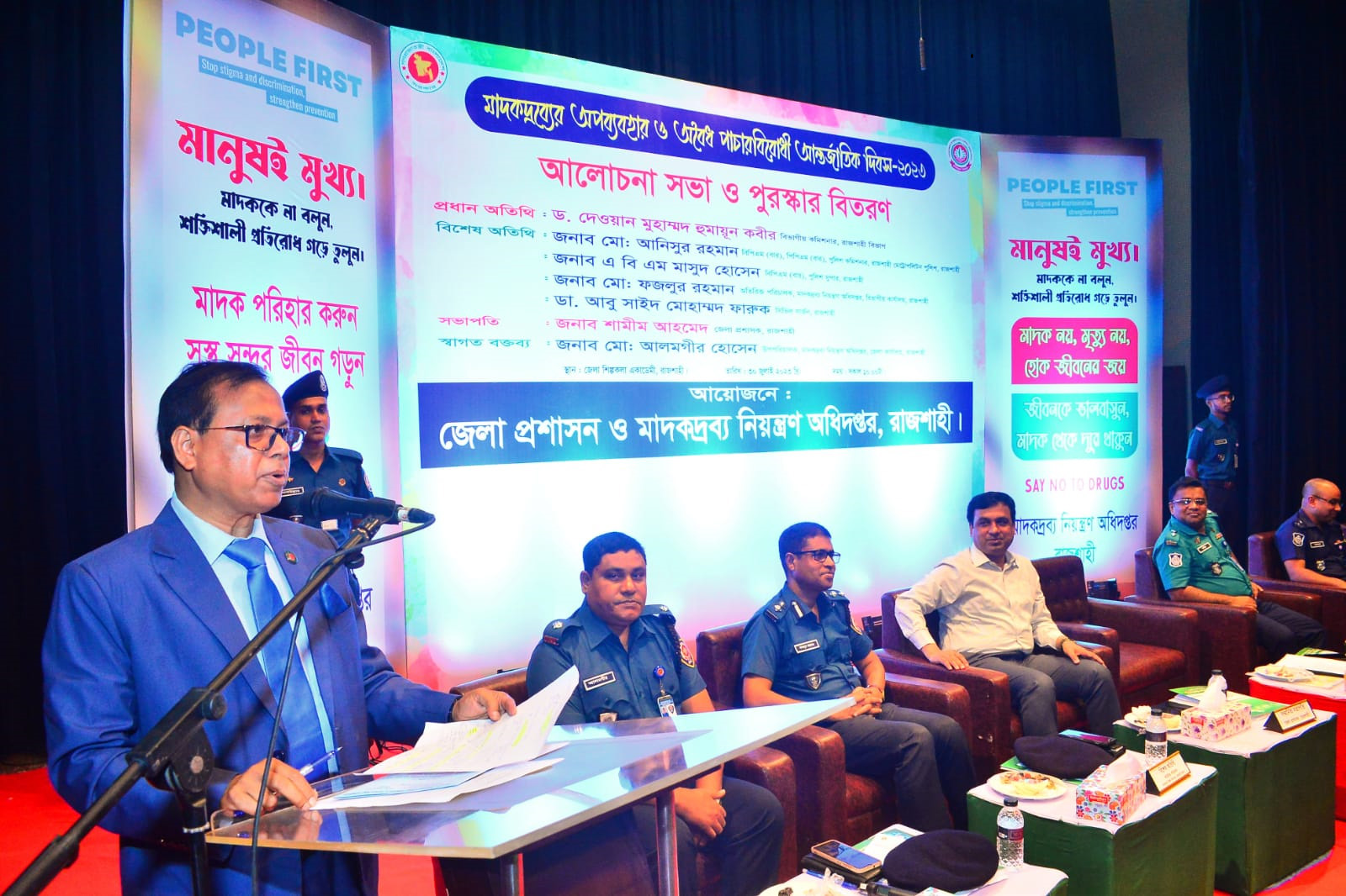 স্টাফ রিপোর্টার: রাজশাহীতে মাদকদ্রব্যের অপব্যবহার ও অবৈধ পাচারবিরোধী আন্তর্জাতিক দিবস উদযাপন করা হয়েছে। এ অনুষ্ঠানে প্রধান অতিথির বক্তব্য দিতে গিয়ে বিভাগীয় কমিশনার ড. দেওয়ান মুহাম্মদ হুমায়ূন কবীর মাদকের বিরুদ্ধে প্রতিটি পরিবারকেই বড় ভূমিকা রাখার আহ্বান জানান।