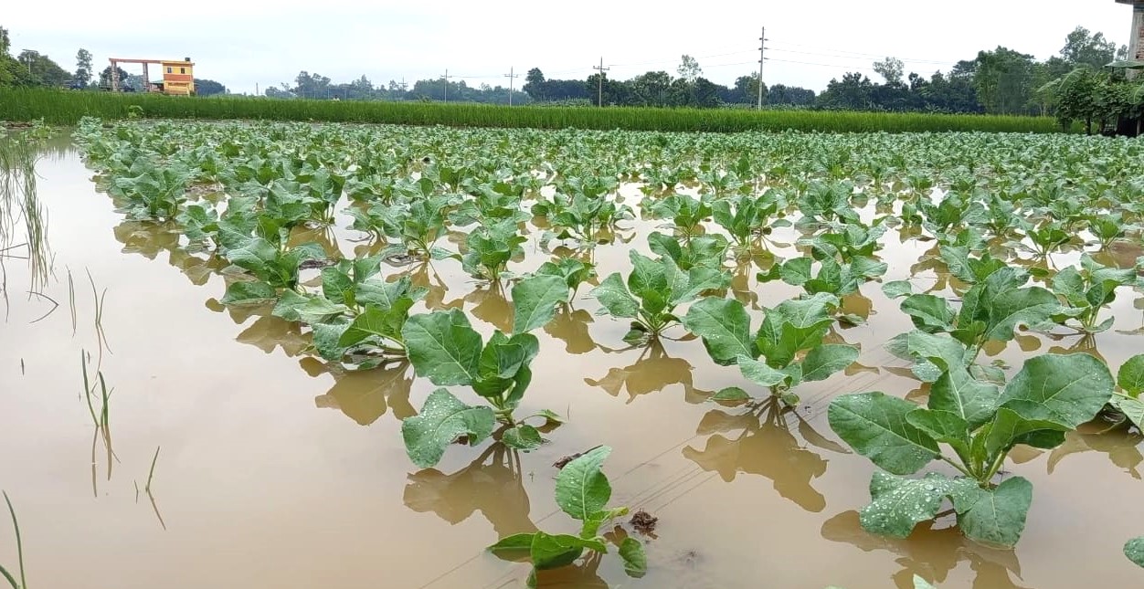 উপজেলার হাজী গোবিন্দপুর, গাইহানা কৃষ্ণপুর, চককানু ও নবগ্রামসহ বিভিন্ন গ্রামে আলু, ফুলকপি, পেঁয়াজ, ক্ষীরাসহ নানা সবজির খেত পানিতে তলিয়ে গেছে। কিছু স্থানে পেঁয়াজের বীজতলাও নষ্ট হয়ে গেছে।