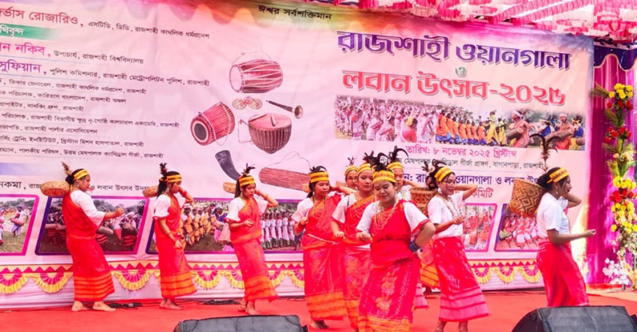 স্টাফ রিপোর্টার : রাজশাহীতে আদিবাসী সম্প্রদায়ের সবচেয়ে বড় ও ঐতিহ্যবাহী ‘ওয়ানগালা’ ও ‘লবান’(নবান্ন) উৎসব উদযাপিত হয়েছে। গারো, শাঁওতাল, পাহাড়িরা, মাহালি, ওঁরাও এই পাঁচ সম্প্রদায় প্রতিবছর তাদের শস্য দেবতা ‘মিসি সালজং’-এর প্রতি কৃতজ্ঞতা জানাতে এবং নতুন ফসল খাওয়ার অনুমতি চেয়ে এই উৎসবটি পালন করে আসছেন।