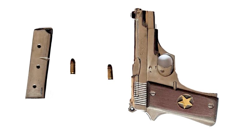 ডিবি পুলিশের উপস্থিতি টের পেয়ে ছিনতাইকারীরা পালিয়ে যাওয়ার সময় ঐখানে অবস্থিত আওয়ামী লীগের অফিসের সামনে কিছু একটা ফেলে দিয়ে আম বাগানের ভিতর দিয়ে দৌড়ে পালিয়ে যায়। ডিবি পুলিশের টিম স্থানীয় নাইট গার্ডদের সাথে নিয়ে আওয়ামী লীগ অফিসের পূর্ব পার্শ্বে ফাঁকা স্থান তল্লাশি করে পরিত্যক্ত অবস্থায় একটি বিদেশী পিস্তল এবং ২ (দুই) রাউন্ড গুলিসহ ১টি ম্যাগাজিন উদ্ধার করে। পিস্তলের গায়ে ইংরেজিতে “গঅউঊ ওঘ টঝঅ” লেখা রয়েছে।