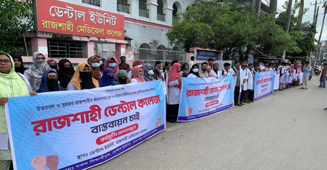 শিক্ষার্থীরা আরও বলেন, রাজশাহী অঞ্চলের শিক্ষার্থীদের মানসম্মত ডেন্টাল শিক্ষা ও স্থানীয় জনগণের উন্নত চিকিৎসা সেবা নিশ্চিত করতে দ্রুত রাজশাহী ডেন্টাল কলেজ স্থাপন করা প্রয়োজন।