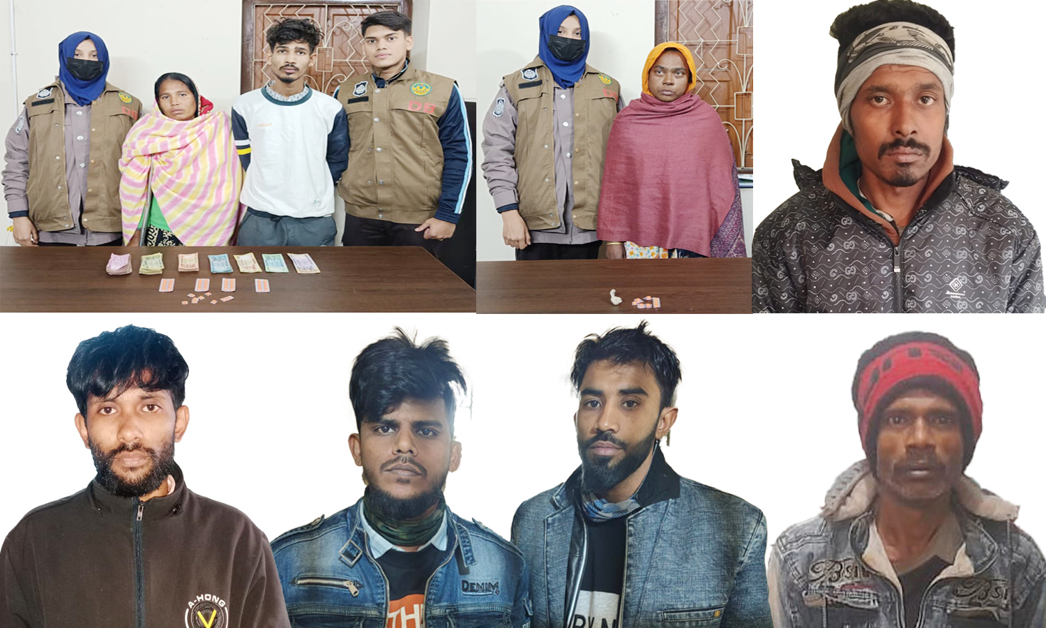 গ্রেপ্তারকৃতরা হলেন, মোছা: ময়না বেগম (৪০), মো: শাকিল (২০), মাবিয়া (৪২), মো: রাহাদ আহমেদ রাফি (২৯), মো: রাকিবুল ইসলাম জাহিদ (৩০), মো: আবুল কালাম আজাদ (৪০), মো: রাজা হোসেন (৩০) এবং মো: রাকিব মিয়া (২৯)।