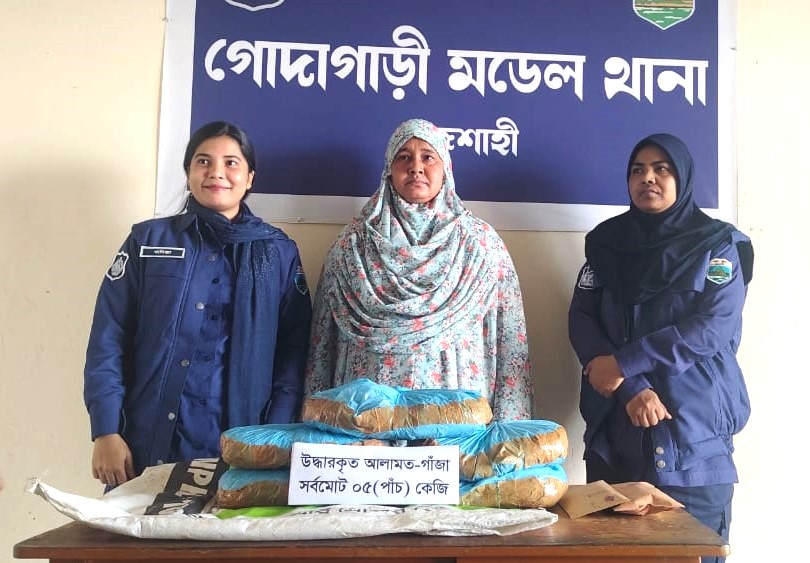 পুলিশের উপস্থিতি টের পেয়ে পালানোর চেষ্টাকালে অভিযুক্ত মোসাঃ শাহিদা বেগমের ডান হাতে থাকা একটি সাদা রঙের প্লাষ্টিকের বস্তার মধ্য হতে ৫কেজি গাঁজাসহ তাকে গ্রেফতার করে।