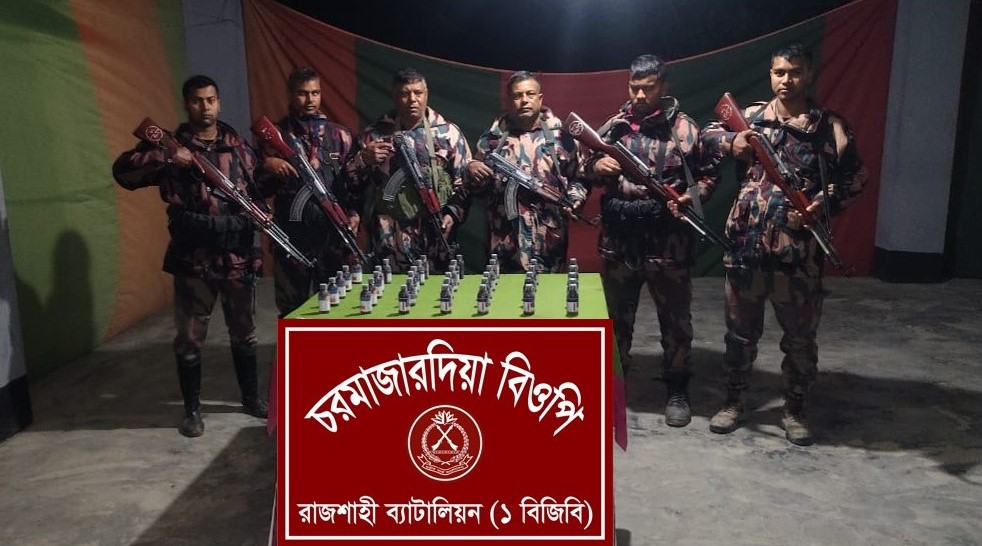 শনিবার সংবাদ বিজ্ঞপ্তি মারফত রাজশাহী ব্যাটালিয়ন (১ বিজিবি) জানান, ১৭ জানুয়ারি রাত আনুমানিক ১২:৫৫ মিনিটে রাজশাহী ব্যাটালিয়ন (১ বিজিবি) এর অধীনস্থ চরমাজারদিয়া বিওপি’র নিয়মিত টহল দল টহল চলাকালীন সময় গোপন তথ্যের ভিত্তিতে দেখতে পায় যে, একজন চোরাকারবারী আন্তর্জাতিক সীমানা অতিক্রম করে মাথায় একটি বস্তা নিয়ে সরিষা ক্ষেতের দিকে আসছে।