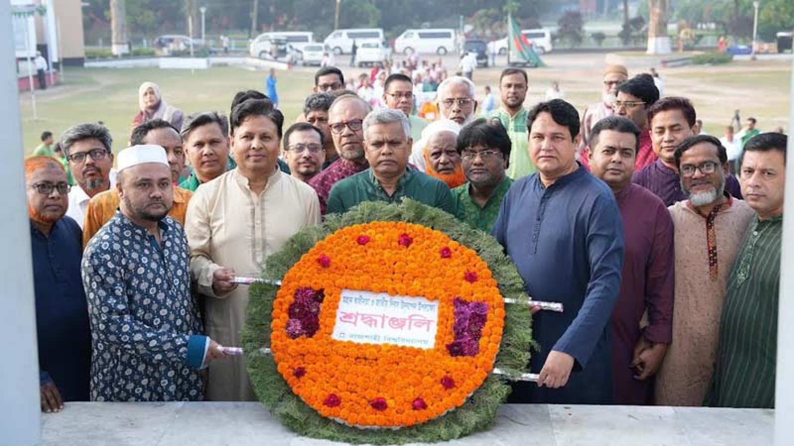 স্টাফ রিপোর্টার : রাজশাহী বিশ্ববিদ্যালয়ে (রাবি) যথাযথ মর্যাদায় মহান স্বাধীনতা ও জাতীয় দিবস উদযাপন করা হয়। এদিন ভোরে সূর্যোদয়ের সাথে সাথে প্রশাসন ভবন-১সহ অন্যান্য ভবনে জাতীয় পতাকা উত্তোলন করা হয়। সকাল ৭টায় উপাচার্য প্রফেসর মো. ফরিদুল ইসলাম বিশ্ববিদ্যালয় প্রশাসনের পক্ষ থেকে শহীদ মিনারে ও সকাল ৭:৩০ মিনিটে গণকবর স্মৃতিস্তম্ভে পুষ্পস্তবক অর্পণ করেন।