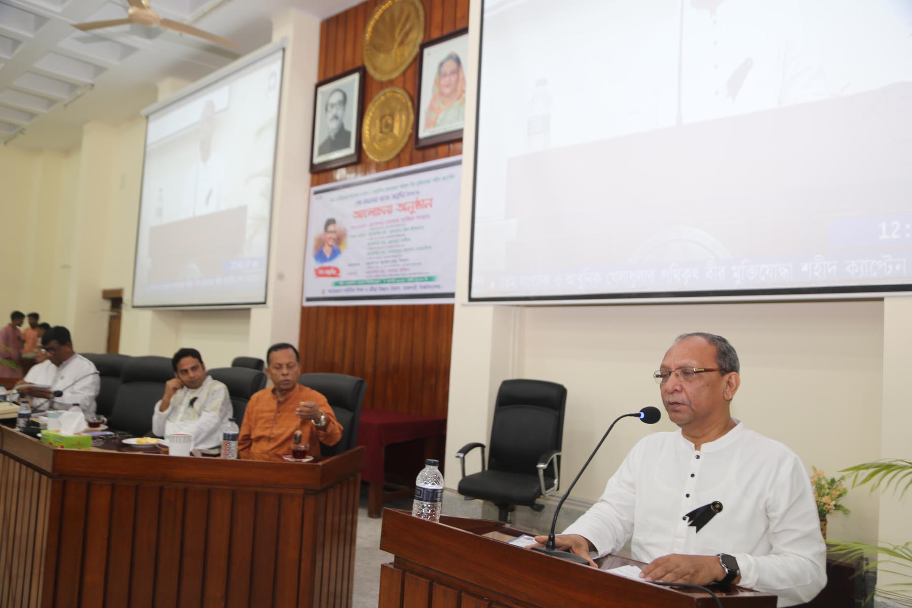 আলোচনা অনুষ্ঠানে প্রধান অতিথির বক্তব্যে রাবি উপাচার্য অধ্যাপক গোলাম সাব্বির সাত্তার বলেন, আগস্টের এই মাসেই জাতির জনক, বাঙালি জাতির দিশা এবং তার পরিবার দুটি কন্যা ব্যতিত সবাইকে নৃশংসভাবে হত্যা করেছিল এদেশের যুদ্ধাপরাধীরা, তাদের দোসররা। বাংলাদেশ নিয়ে আলোচনা করলে বঙ্গবন্ধু অনিবার্য হিসেবে আসে এবং আসেন তাঁর কন্যা আমাদের প্রাণপ্রিয় জননেত্রী শেখ হাসিনা। যিনি আজীবন তাঁর এই স্বজন হারানোর ব্যাথা বয়ে বেড়াচ্ছেন। একারণেই তিনি আমাদের জন্য অনিবার্য ।