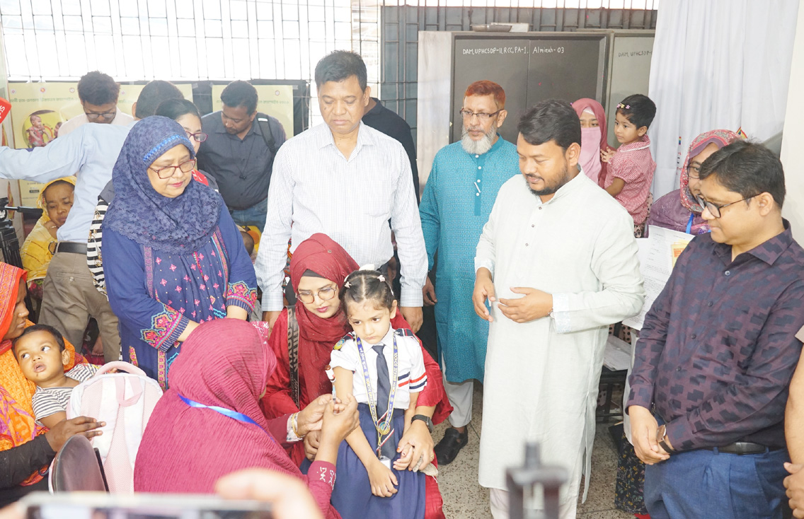 এরই অংশ হিসেবে আজ থেকে সারাদেশে হাম-রুবেলা টিকাদান ক্যাম্পেইন শুরু হয়েছে। ২০ এপ্রিল হতে ১০ মে ২০২৬ পর্যন্ত ১৪ কর্মদিবসে রাজশাহী মহানগরীতে কমিউনিটি পর্যায়ে ৪৫ হাজার ৬২৩ জন শিশুকে এবং স্কুল পর্যায়ে ৮ হাজার ৫২১ জন শিশুসহ সর্বমোট ৫৪ হাজার ১৪৪ জন শিশুকে টিকা প্রদানের লক্ষ্যমাত্রা নির্ধারণ করা হয়েছে। ০৬ মাস থেকে ০৫ বছরের কম বয়সি সকল শিশুকে এই ক্যাম্পেইনের আওতায় টিকা প্রদান করা হচ্ছে।