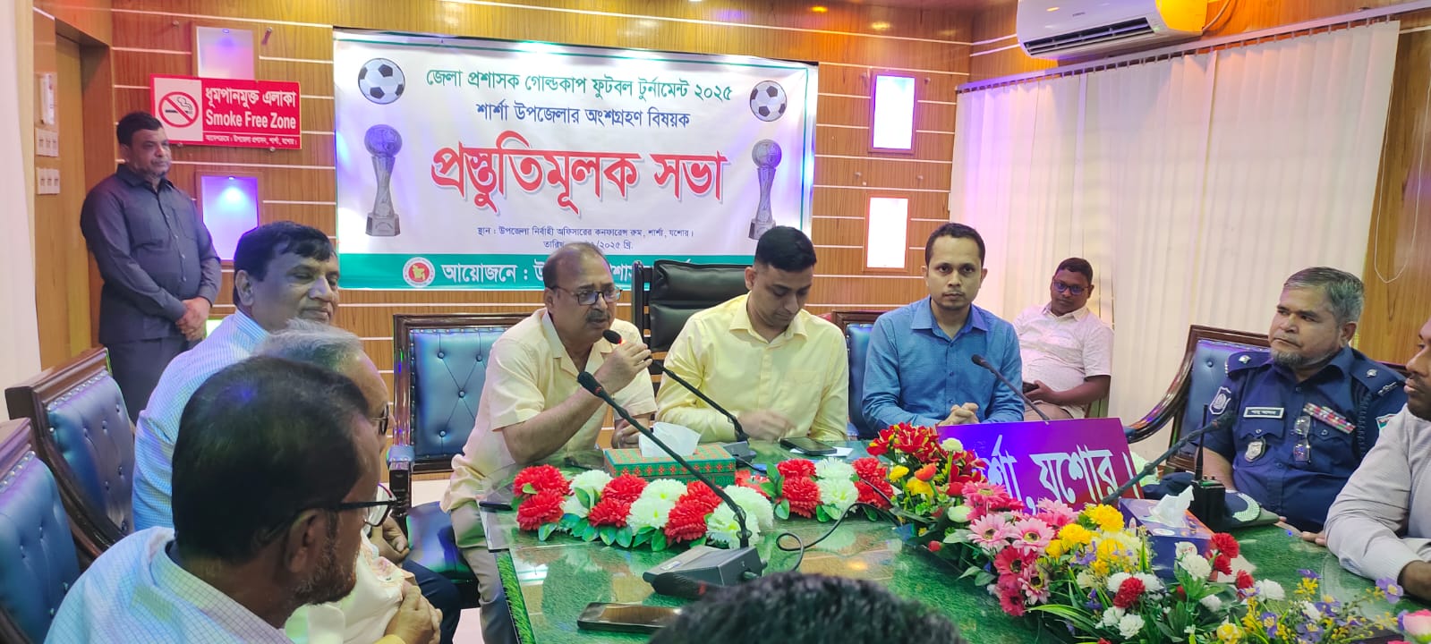 মনির হোসেন, বেনাপোল প্রতিনিধি : যশোরের শার্শা উপজেলায়, জেলা প্রশাসক গোল্ডকাপ ফুটবল টুর্নামেন্ট-২০২৫ এর প্রস্তুতিমূলক সভা অনুষ্ঠিত হয়েছে। রোববার বিকাল সাড়ে ৪ টার সময় শার্শা উপজেলা নির্বাহী অফিসারের কনফারেন্স রুমে সভা অনুষ্ঠিত হয়।
