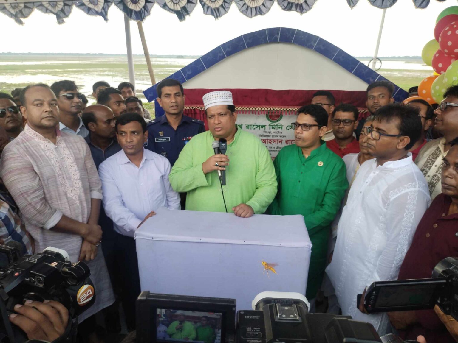 এসময় উপস্থিত ছিলেন, নাটোর-২ আসনের সংসদ সদস্য মো. শফিকুল ইসলাম শিমুল, নাটোর-নওগাঁ সংরক্ষিত মহিলা আসনের সংসদ সদস্য রত্না আহমেদ, জেণা আওয়ামী লীগের সাধারণ সম্পাদক শরিফুল ইসলাম রমজান, জেলা প্রশাসক আবু নাছের ভূঞা, পুলিশ সুপার সাইফুর রহমান, নাটোর পৌরসভার মেয়র উমা চৌধুরি জলি, নাটোর জজ কোর্টের পিপি সিরাজুল ইসলাম প্রমুখ।