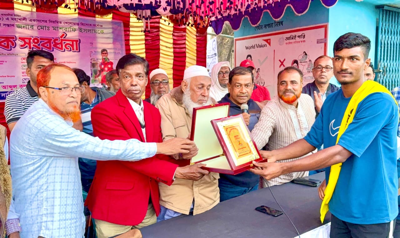 সংবর্ধনা অনুষ্ঠানে বক্তারা বলেন, “মাশরাফি আমাদের আইকন, তিনি এলাকার গর্ব। অতি দরিদ্র পরিবারে জন্ম নিয়েও কঠোর পরিশ্রম ও অধ্যবসায়ের মাধ্যমে আজ তিনি সাফল্যের শিখরে পৌঁছেছেন। আমরা বিশ্বাস করি, আগামীতে তিনি জাতীয় দলে খেলে দেশের নেতৃত্ব দেবেন।”