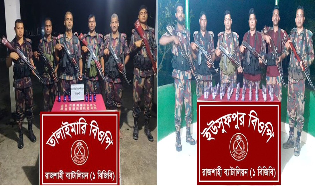 সীমান্তে বিজিবির পৃথক অভিযানে মাদকদ্রব্য জব্দ