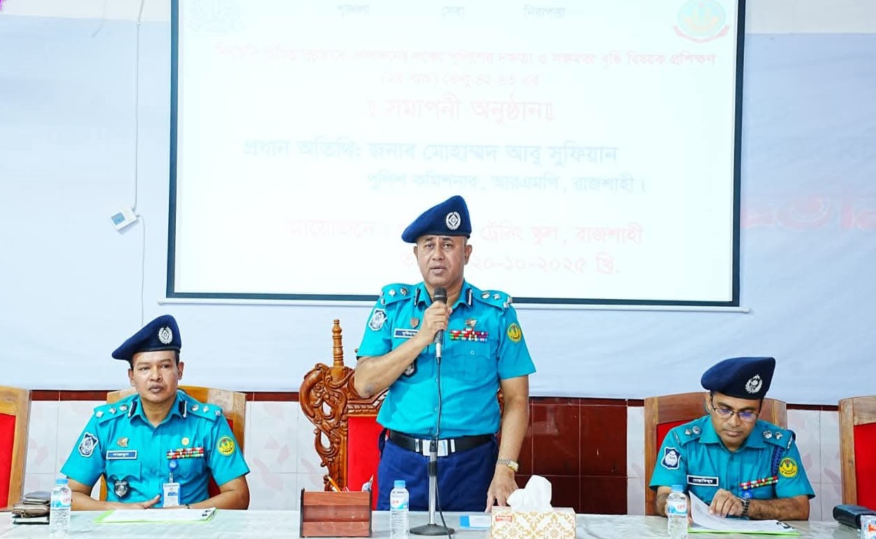 স্টাফ রিপোর্টার : প্রতিপাদ্য: “থাকবে পুলিশ জনপদে, ভোট দেবেন নিরাপদে” বাংলাদেশ পুলিশের অন্যান্য ইউনিটের ন্যায় রাজশাহী মেট্রোপলিটন পুলিশ (আরএমপি) -এর উদ্যোগে নির্বাচনি দায়িত্ব সুষ্ঠুভাবে সম্পাদনের লক্ষ্যে পুলিশের দক্ষতা ও সক্ষমতা বৃদ্ধিমূলক ৩ দিনব্যাপী প্রশিক্ষণ কর্মশালার দ্বিতীয় ব্যাচের সমাপনী অনুষ্ঠান অনুষ্ঠিত হয়েছে।