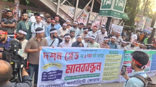 দশম গ্রেডসহ ৬ দফা দাবিতে ফার্মাসিস্টদের মানববন্ধন