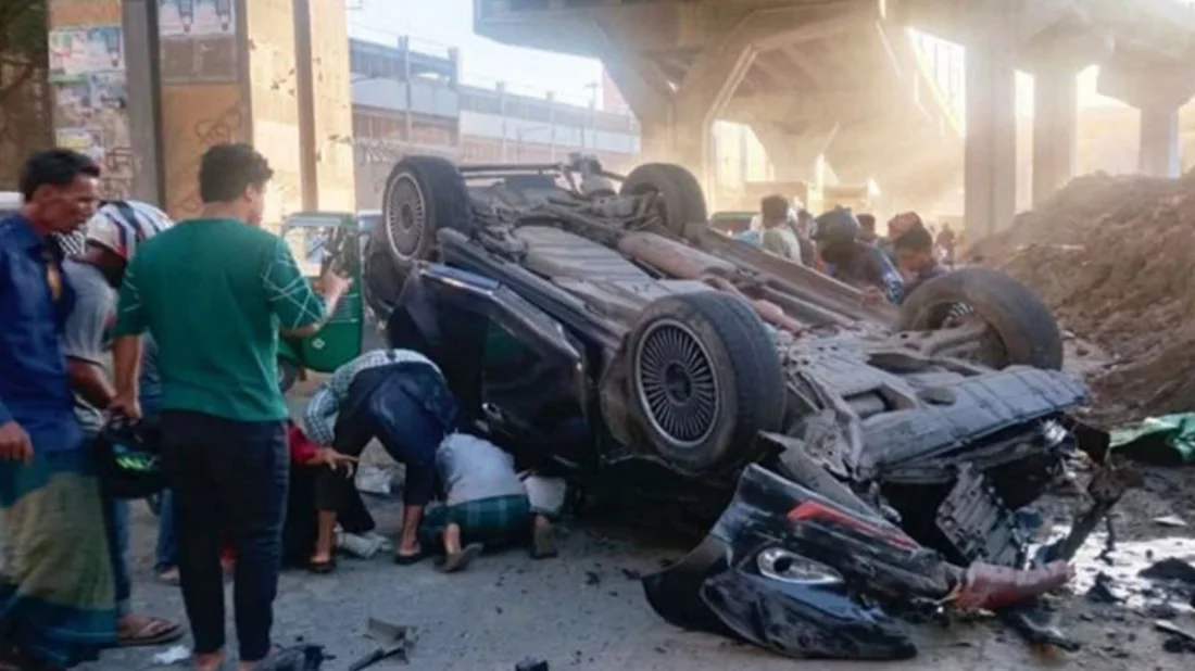 এক্সপ্রেসওয়ে থেকে গাড়ি ছিটকে পড়ে পথচারী নিহত, আহত ৪
