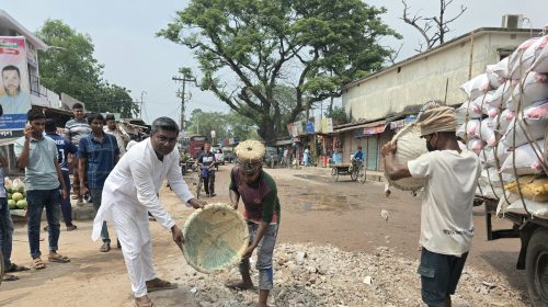 খানাখন্দে ভরা পথে মানবিক দৃষ্টান্ত, নিজ হাতে সড়ক মেরামত করলেন আব্দুস সালেক আদিল