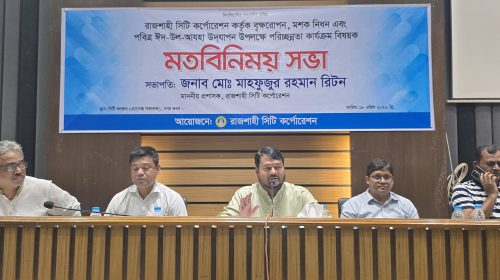 রাসিকের উদ্যোগে বৃক্ষরোপণ, মশক নিধন ও আসন্ন ঈদুল আযহা উপলক্ষে পরিচ্ছন্নতা কার্যক্রম বিষয়ক মতবিনিময় সভা অনুষ্ঠিত