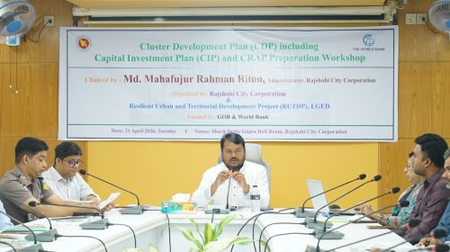 স্টাফ রিপোর্টার : রাজশাহী সিটি কর্পোরেশন এবং রেজিলিয়েন্ট আরবান এন্ড টেরিটোরিয়াল ডেভেলপমেন্ট প্রজেক্ট, এলজিইডি এর আয়োজনে ক্লাস্টার উন্নয়ন ও ক্যাপিটাল বিনিয়োগ উন্নয়ন পরিকল্পনা বিষয়ক কর্মশালা অনুষ্ঠিত হয়েছে। মঙ্গলবার (২১ এপ্রিল)…