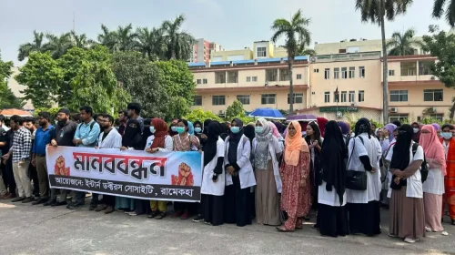 রামেক হাসপাতালে ২৪ ঘণ্টার কর্মবিরতিতে ইন্টার্ন চিকিৎসকরা